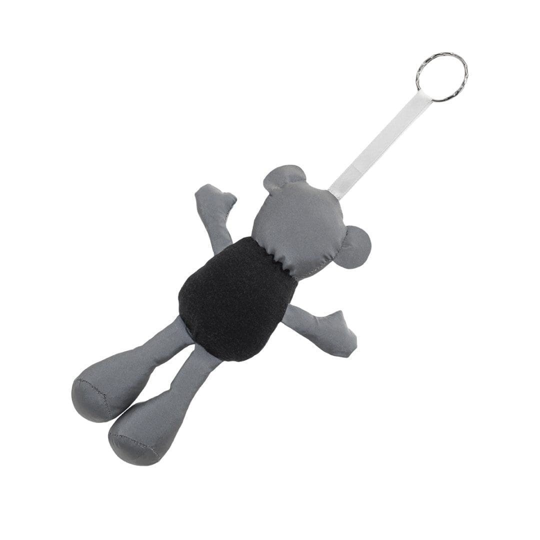 Ręcznie szyty brelok „miś” w koszulce. Wykonany z materiału odbijającego światło.
