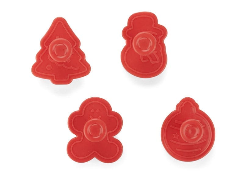 Zestaw 4 foremek do wypieku świątecznych ciasteczek, w kształtach: bałwan, bombka, piernikowy ludzik i choinka. Foremki wykonane są z trwałego tworzywa, co zapewnia łatwość użytkowania oraz trwałość. Każda foremka umożliwia szybkie i przyjemne wycinanie ciastek – wystarczy położyć ją na rozwałkowanym cieście, nacisnąć wystający element i gotowe.