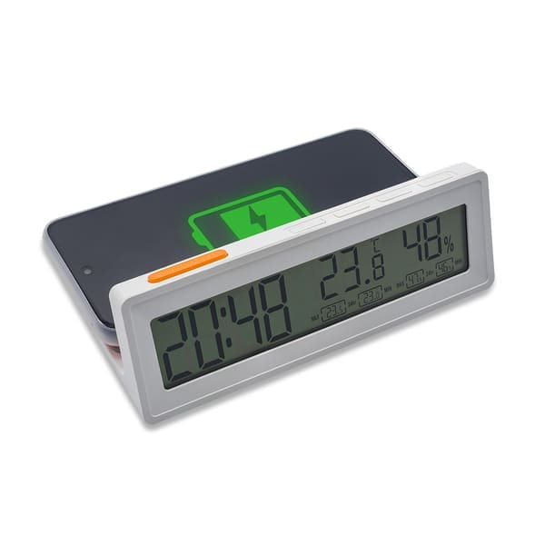 Urządzenie sprawdzi się jako element wyposażenia biura, domowego gabinetu, recepcji, a także sypialni. Wystarczy podłączyć je do źródła zasilania i położyć kompatybilny smartfon na powierzchni ładowania. Wyświetlacz na bieżąco prezentuje dane pogodowe, co czyni je funkcjonalnym gadżetem biurkowym dla pracowników, klientów i partnerów biznesowych.