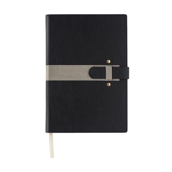 Elegancki szary notes w twardej oprawie, wykonany z wysokiej jakości materiałów. Idealny jako gadżet promocyjny lub praktyczne narzędzie biurowe.