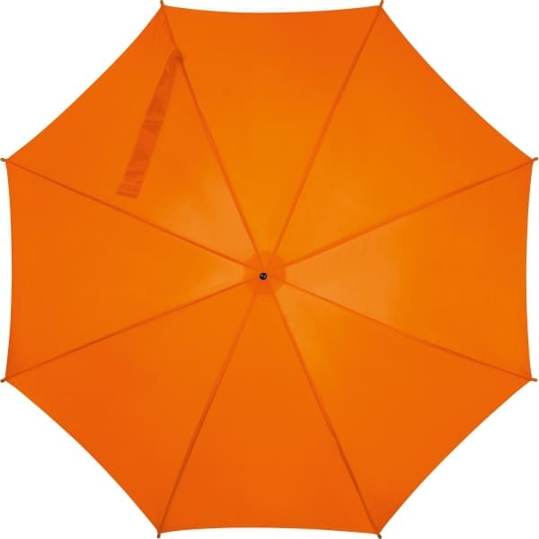 Ten elegancki parasol z serii M-Collection to idealne połączenie trwałości, funkcjonalności i estetyki. Wykonany z wytrzymałego poliestru 190 T, wyposażony w wygodną, drewnianą, wygiętą rączkę oraz stylowe, drewniane zakończenia żeber, zapewnia solidną ochronę w deszczowe dni. Automatyczny mechanizm otwierania jest niezwykle praktyczny i umożliwia szybkie wyciągnięcie parasola przy pierwszej kropli deszczu. Model w odcieniu pomarańczowym, który wyróżnia się energią i świeżością, jednocześnie stanowiąc doskonałą bazę do personalizacji.