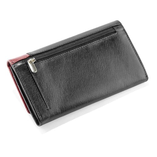 Portfel ALEXANDRA wykonany ze skóry naturalnej to unikatowy dodatek o klasycznym wzorze, przełamanym kolorową wstawką. Posiada zewnętrzną kieszeń zamykaną na zamek, a wewnątrz oferuje 5 zakładek na karty kredytowe, 5 przegródek na dokumenty oraz dodatkową kieszonkę na zamek. Elegancki i funkcjonalny, idealny do codziennego użytku.