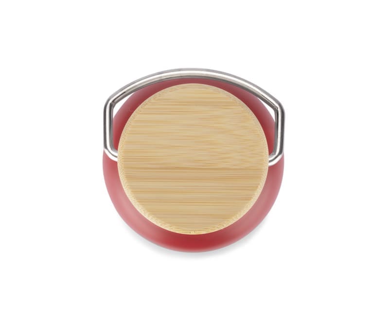 Butelka termiczna KAAN wykonana ze stali nierdzewnej o podwyższonym standardzie. Posiada ciekawy design uchwytu oraz zakrętki z bambusowym wykończeniem. Dzięki próżni między ściankami, utrzymuje temperaturę napoju do około 10 godzin.