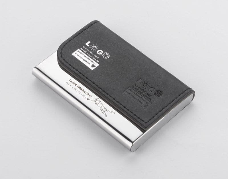 Elegancki wizytownik z ekoskóry PU z zapięciem na magnes. Mieści 20 wizytówek. Logo tłoczymy lub grawerujemy na powierzchni z ekoskóry.