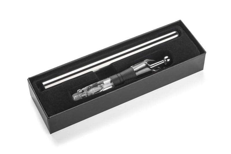 Wkład chłodzący z nalewakiem BLANC to wyjątkowy gadżet dla miłośników wina. Utrzymuje odpowiednią temperaturę wina, napowietrza trunek dzięki wbudowanemu aeratorowi, i umożliwia zachowanie aromatów za pomocą zamykanego korka. Przed użyciem należy schłodzić wkład w zamrażalniku. Produkt jest zapakowany w eleganckie czarne pudełko, co czyni go idealnym na prezent.
