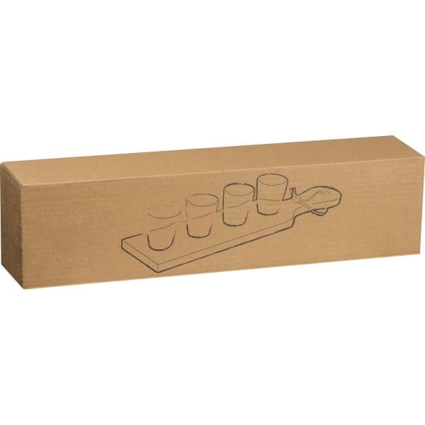Ten stylowy zestaw łączy klasykę szkła z ciepłą estetyką bambusa. Cztery delikatne kieliszki o pojemności 30 ml oraz praktyczna, naturalna podstawka z pętelką do zawieszenia tworzą idealny zestaw degustacyjny. To subtelna propozycja, która sprawdzi się zarówno podczas przyjęć, jak i jako luksusowy gadżet reklamowy.