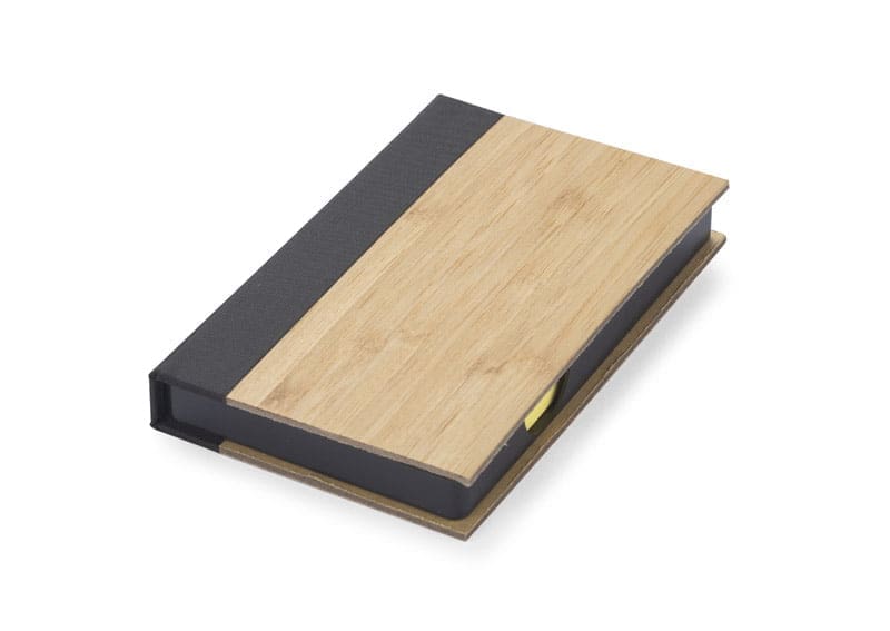 Praktyczny zestaw karteczek na biurko. Zestaw zawiera żółte samoprzylepne karteczki do zapisków, a także 5 kolorowych karteczek do zaznaczania. Etui wykonane z bambusa.