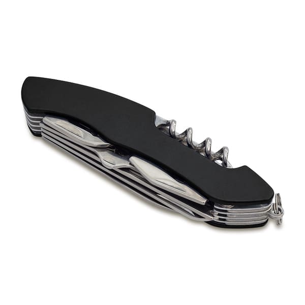 - Narzędzie wielofunkcyjne 11-w-1 – obejmuje: nóż, piłę, skrobak do ryb, nożyczki, otwieracze (butelki i puszek), dziurkacz, pilnik do paznokci, śrubokręt krzyżakowy, korkociąg i dłuto.