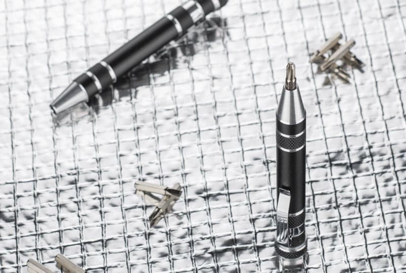 Komplet śrubokrętów zawiera 8 różnych końcówek. Klip umożliwia przymocowanie do kieszeni, dzięki czemu zapobiegnie przypadkowemu zgubieniu. Końcówki śrubokrętów mocowane za pomocą magnesu. Logo wygrawerujemy na powierzchni.