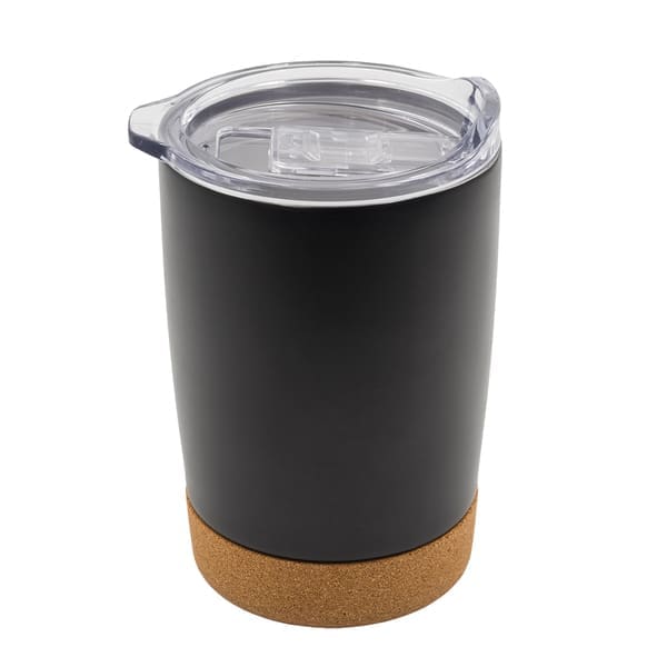 Biznesowy zestaw składający się z kubka próżniowego, parasola, notesu i długopisu. Zapakowany w eleganckim, czarnym pudełku. Notatnik A5, 80 kartek w kratkę, gramatura 70 g/m². Kubek o pojemności 350 ml, ze stali nierdzewnej z recyklingu, z przezroczystą pokrywką i korkową podstawą. Parasol z materiału RPET 190T pongee z korkową rączką. Wodoodporne etui i długopis z korkowym korpusem.
